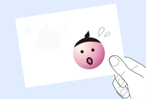 一見印刷のない白いままの部分ですが、光の当て方を変えるとさりげなくキャラクターの絵柄が見えます。ただし、ほとんど目立たなく、条件によっては見えない場合もあります。