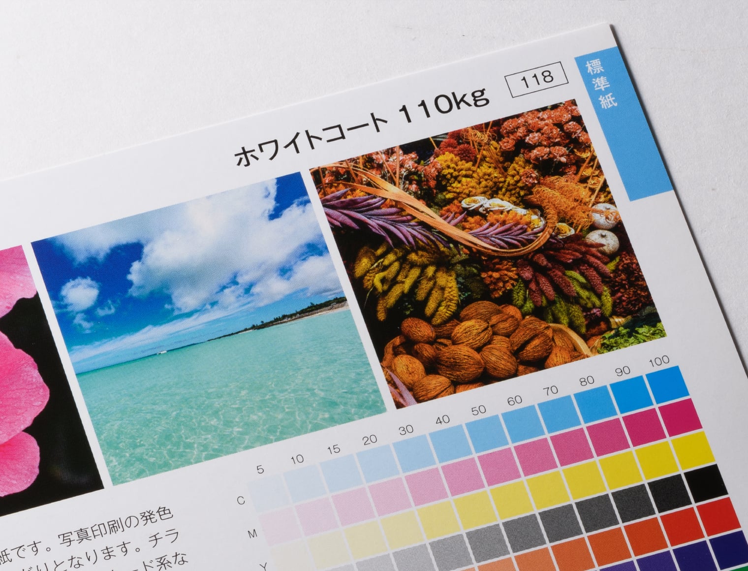 用紙の発色・厚み・手触り感はサンプル請求にて用紙サンプルをお取り寄せいただいてお確かめください。