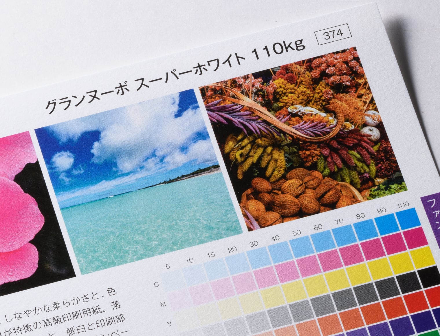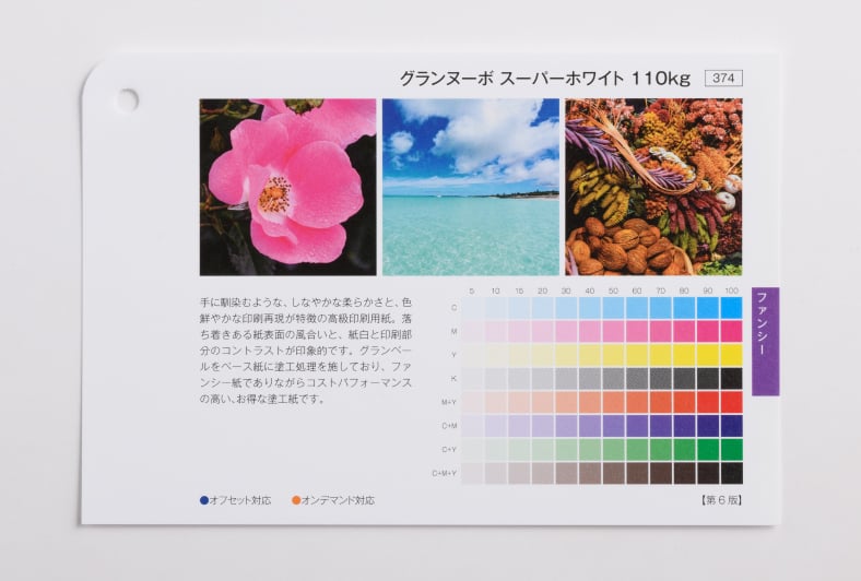 用紙の発色・厚み・手触り感はサンプル請求にて用紙サンプルをお取り寄せいただいてお確かめください。