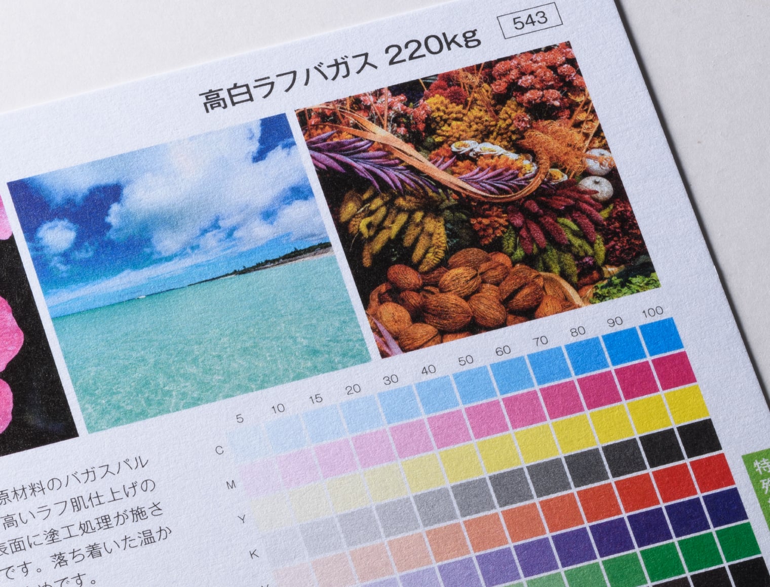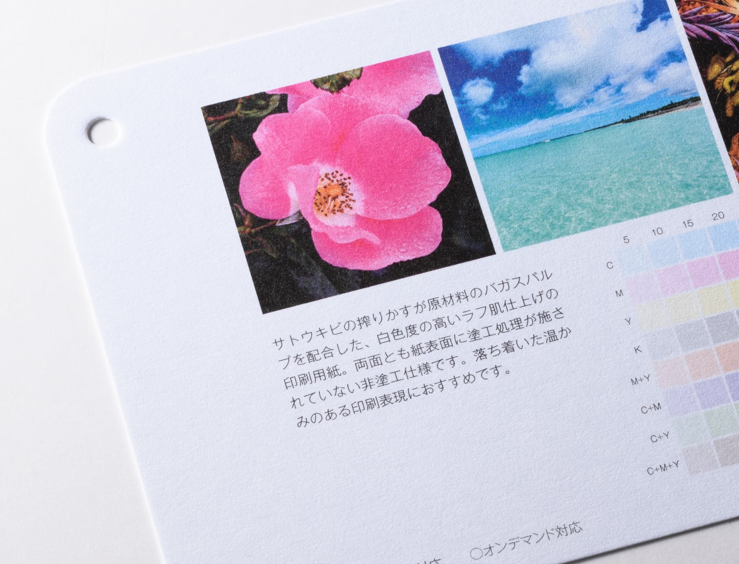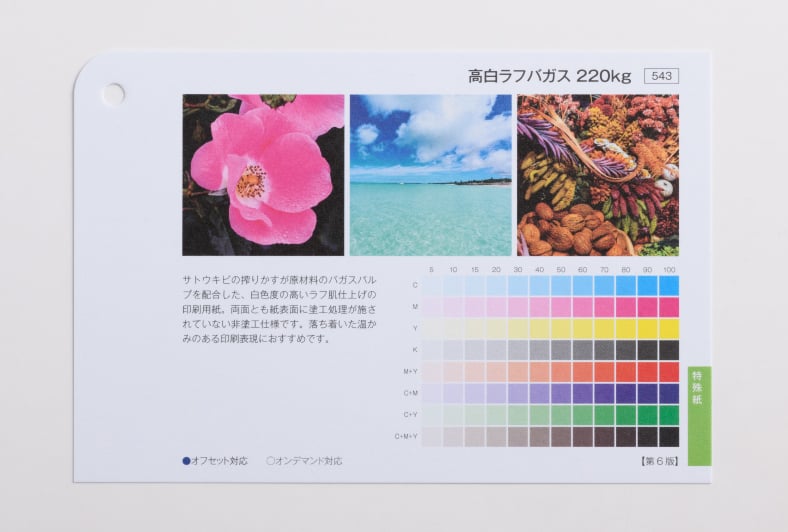 用紙の発色・厚み・手触り感はサンプル請求にて用紙サンプルをお取り寄せいただいてお確かめください。