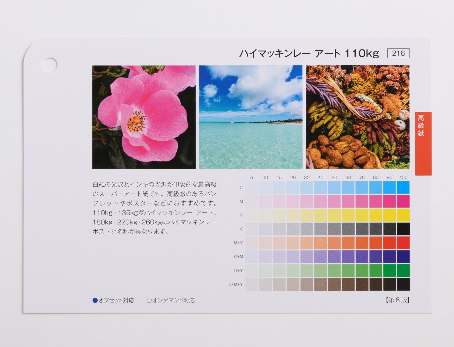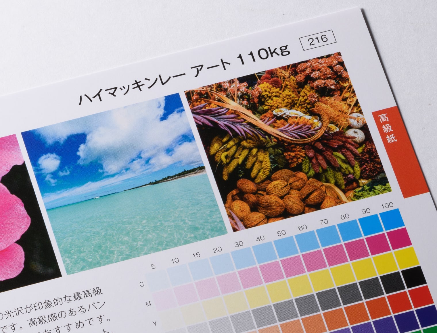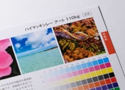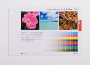 白紙の光沢とインキの光沢が印象的な最高級のスーパーアート紙です。