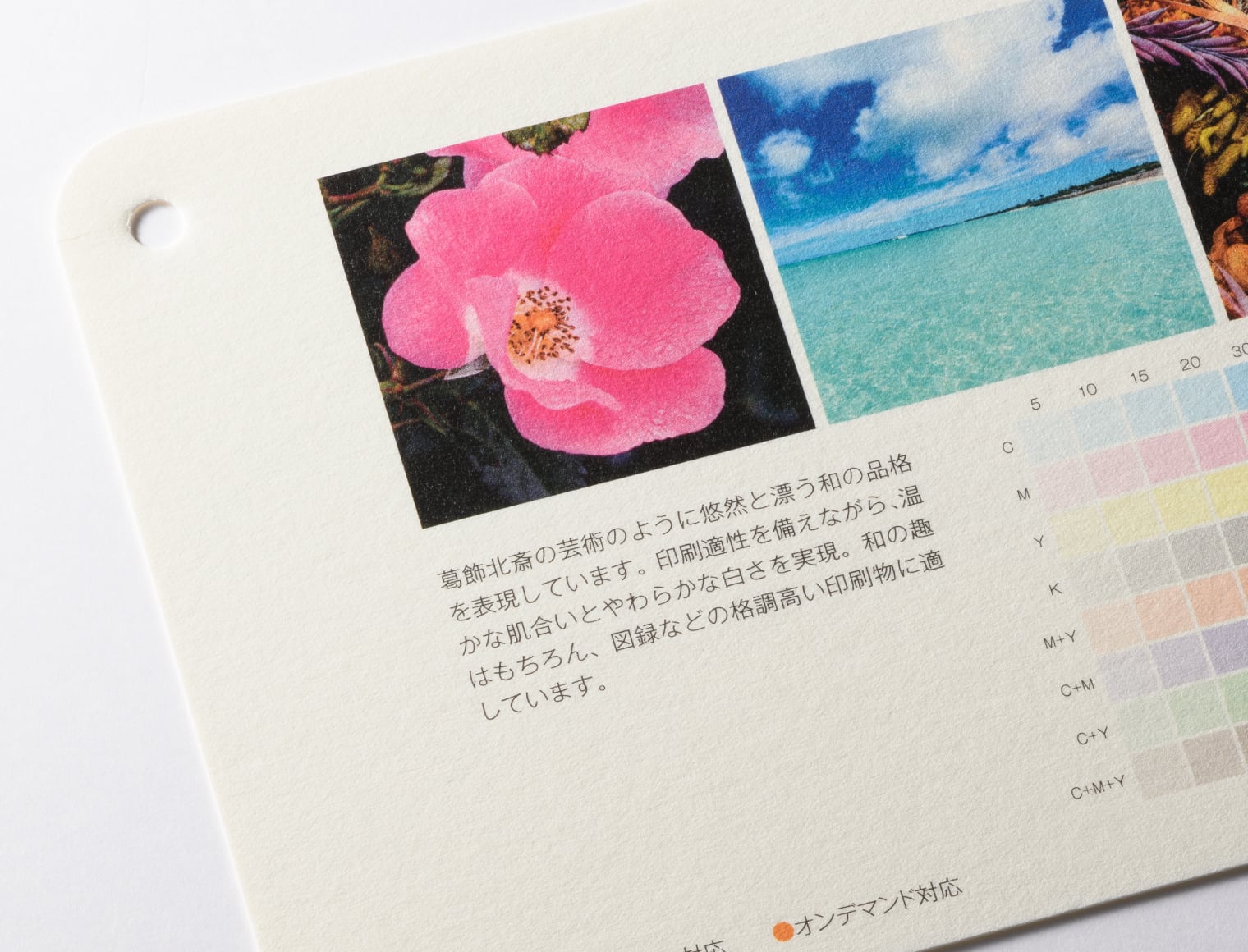 用紙の発色・厚み・手触り感はサンプル請求にて用紙サンプルをお取り寄せいただいてお確かめください。