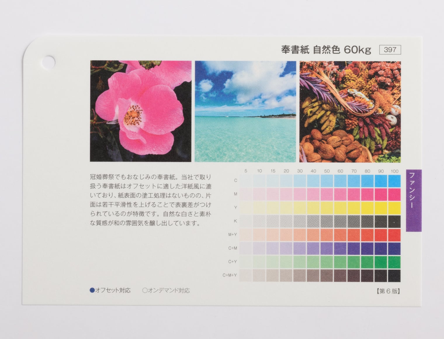 用紙の発色・厚み・手触り感はサンプル請求にて用紙サンプルをお取り寄せいただいてお確かめください。