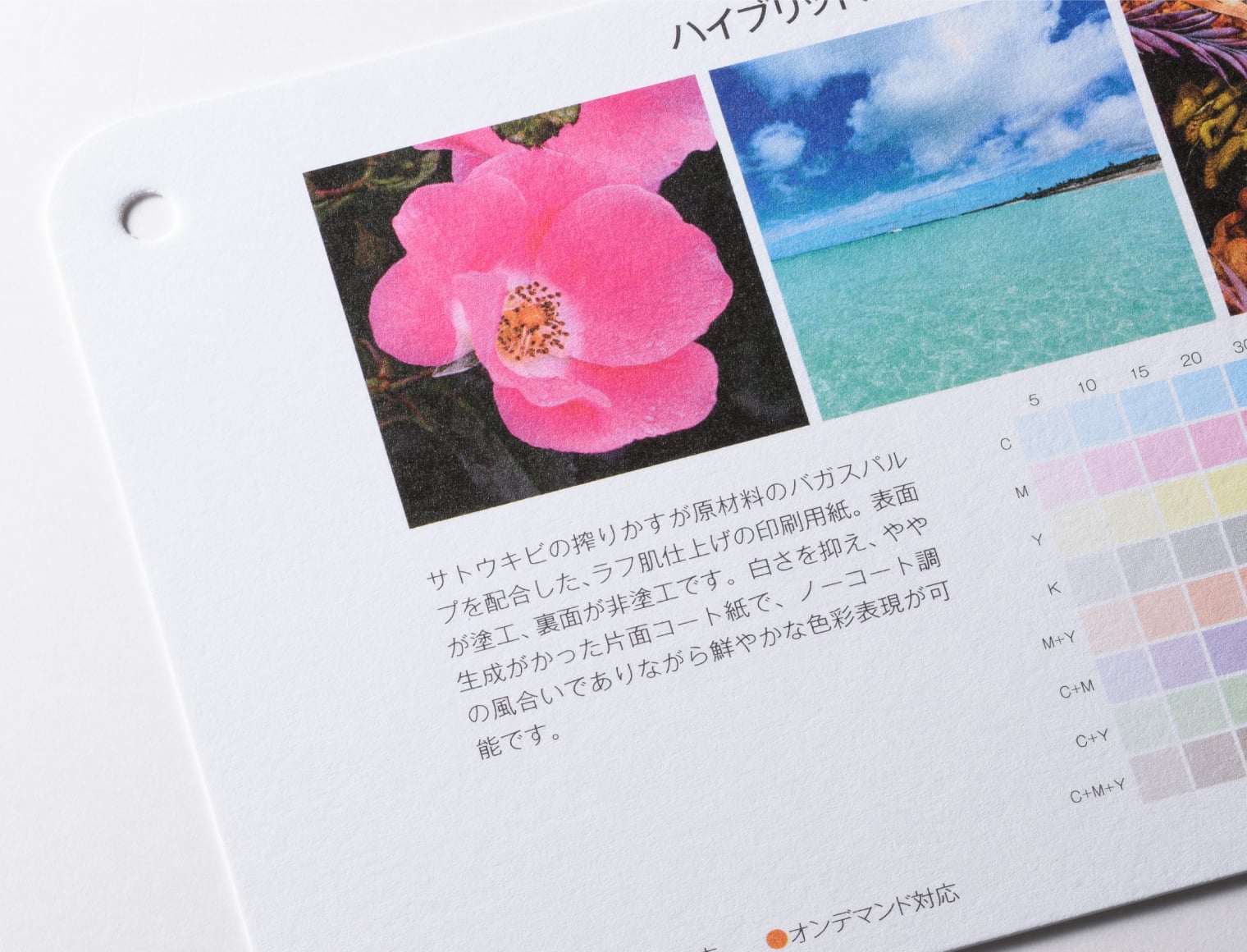 用紙の発色・厚み・手触り感はサンプル請求にて用紙サンプルをお取り寄せいただいてお確かめください。