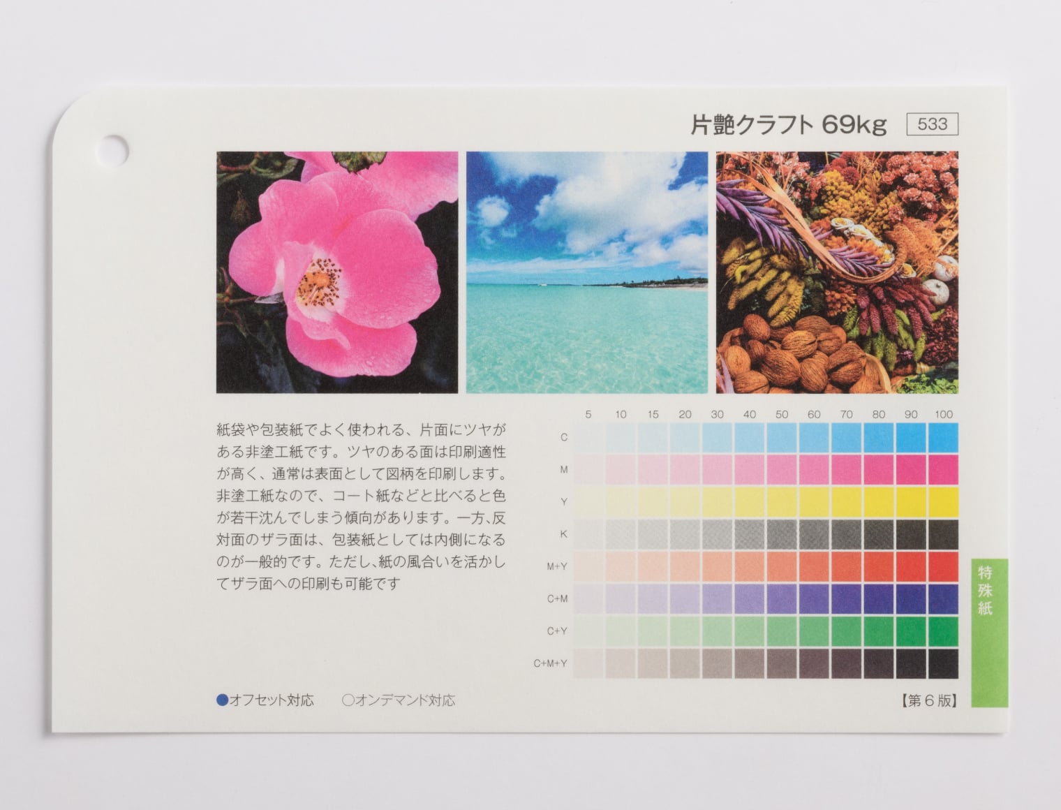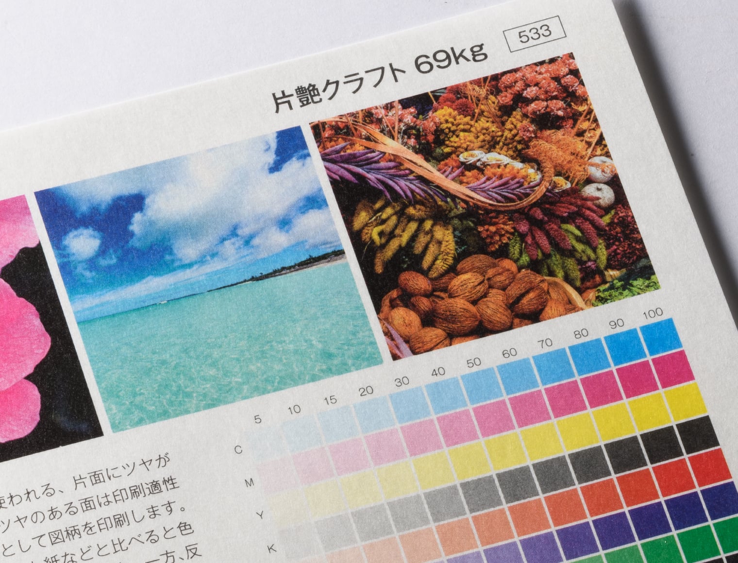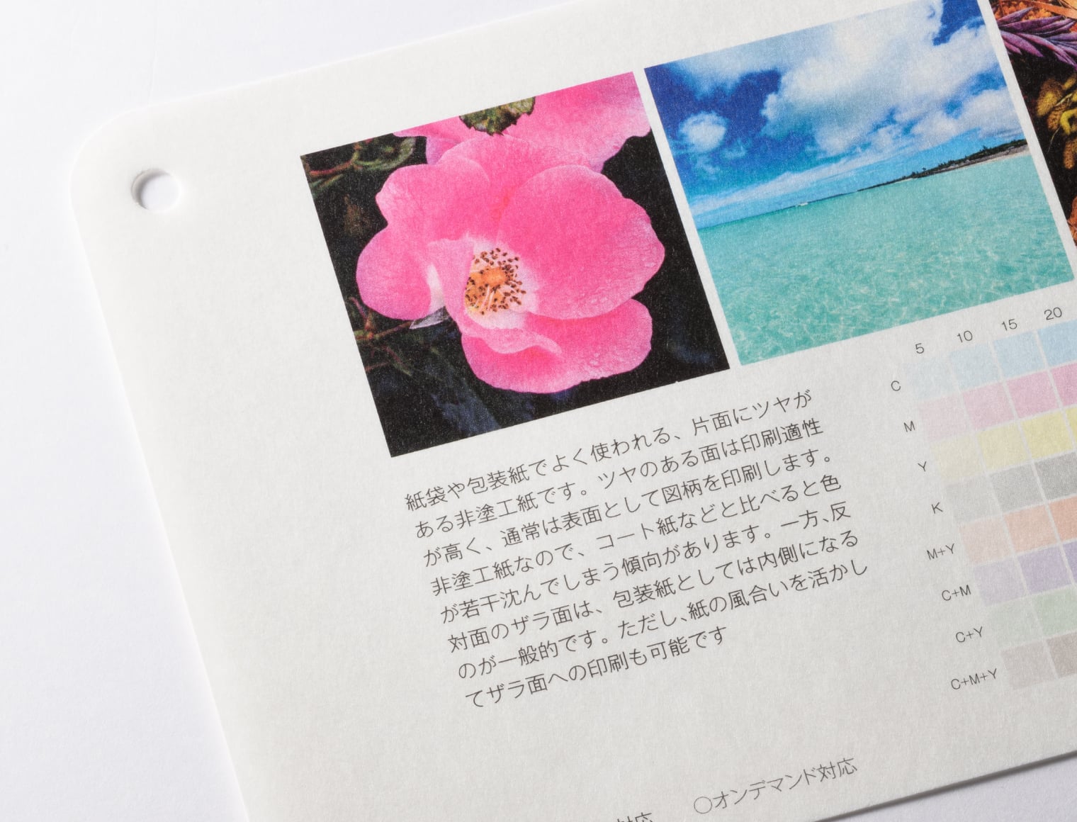 用紙の発色・厚み・手触り感はサンプル請求にて用紙サンプルをお取り寄せいただいてお確かめください。