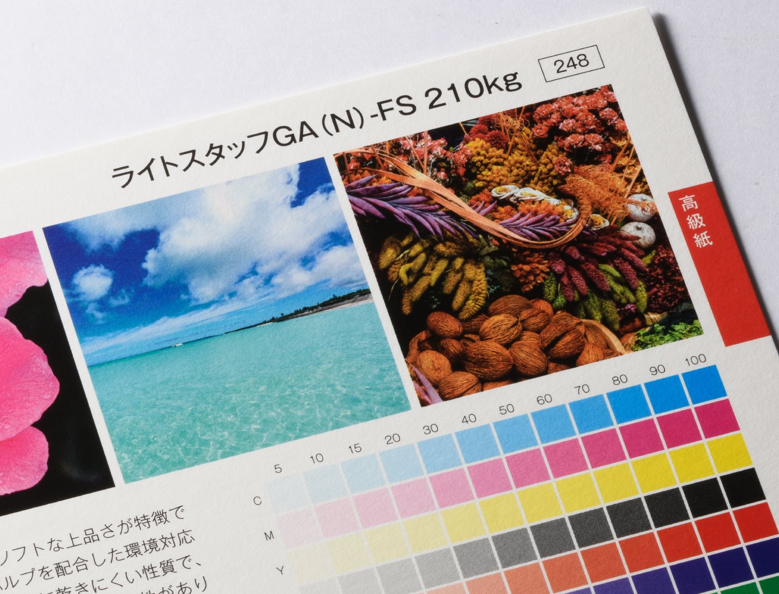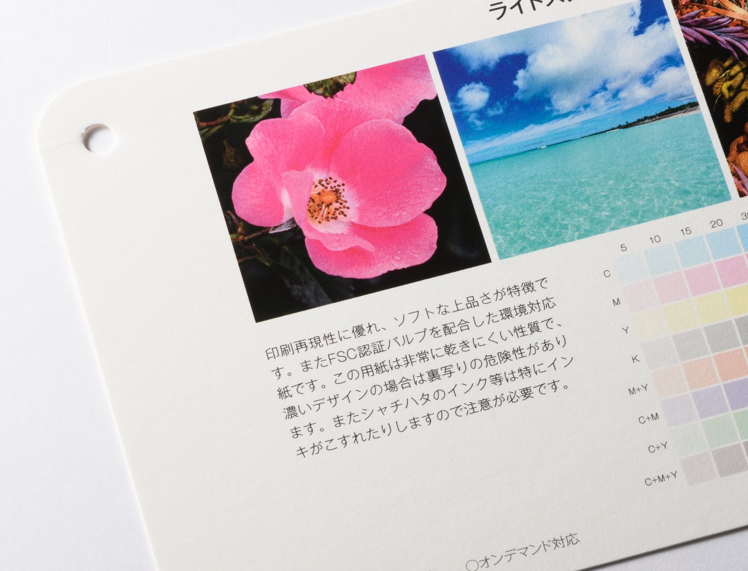 用紙の発色・厚み・手触り感はサンプル請求にて用紙サンプルをお取り寄せいただいてお確かめください。