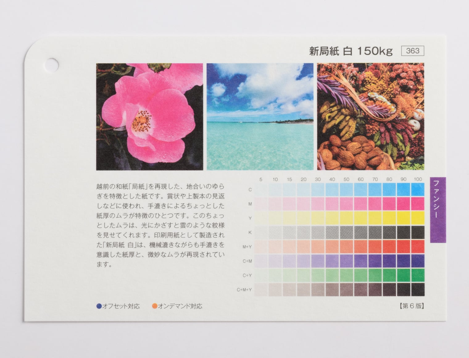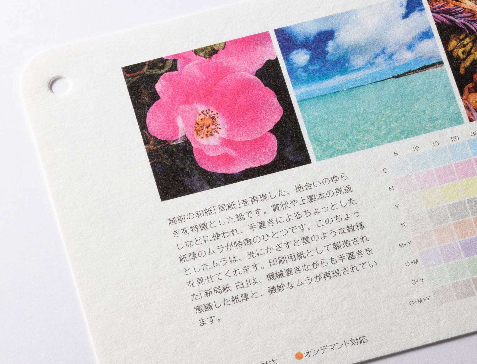 用紙の発色・厚み・手触り感はサンプル請求にて用紙サンプルをお取り寄せいただいてお確かめください。