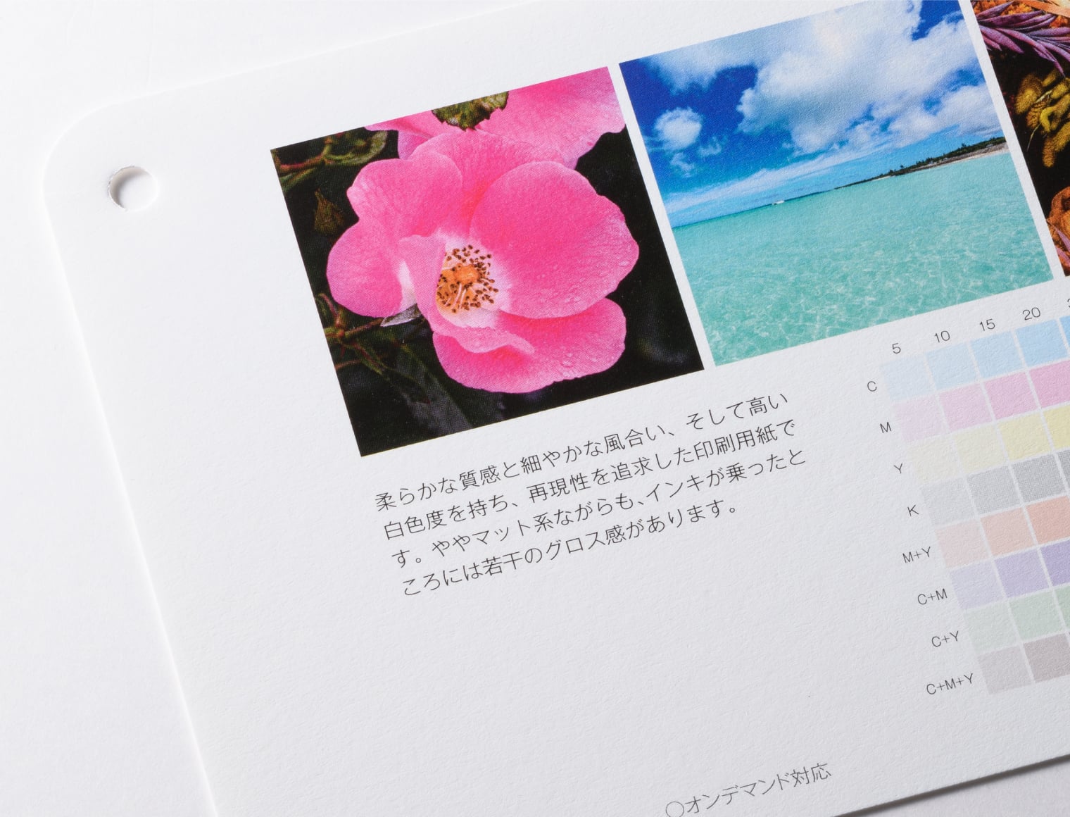 用紙の発色・厚み・手触り感はサンプル請求にて用紙サンプルをお取り寄せいただいてお確かめください。