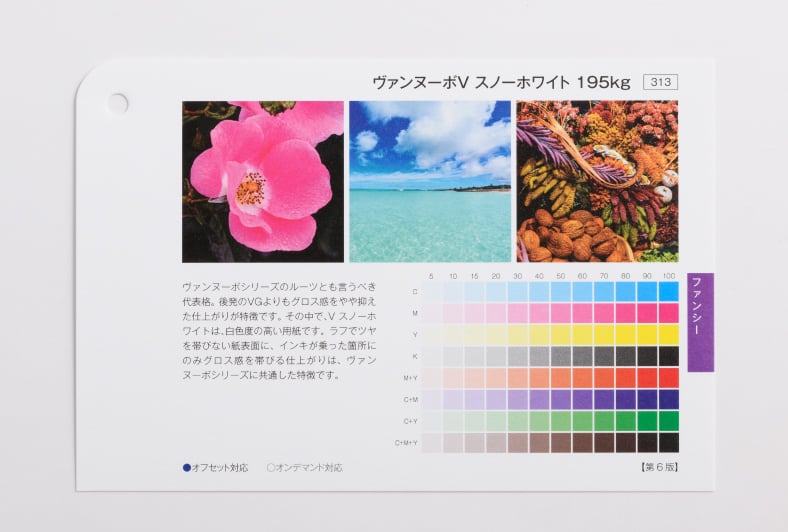 用紙の発色・厚み・手触り感はサンプル請求にて用紙サンプルをお取り寄せいただいてお確かめください。
