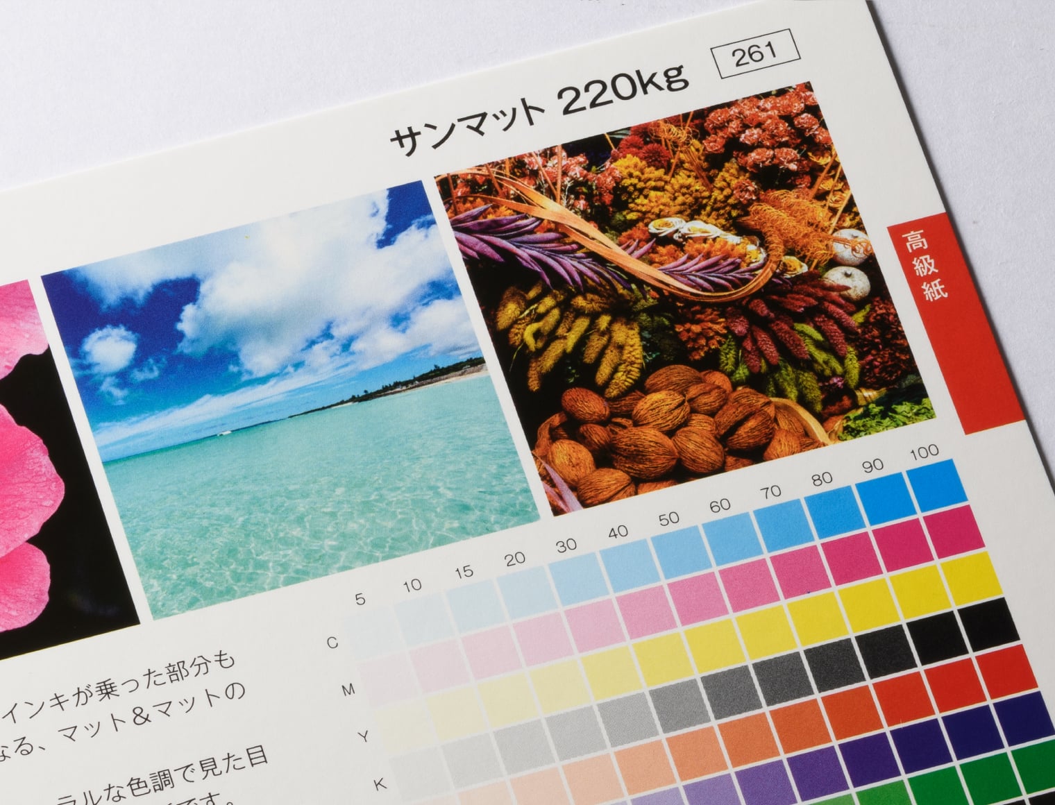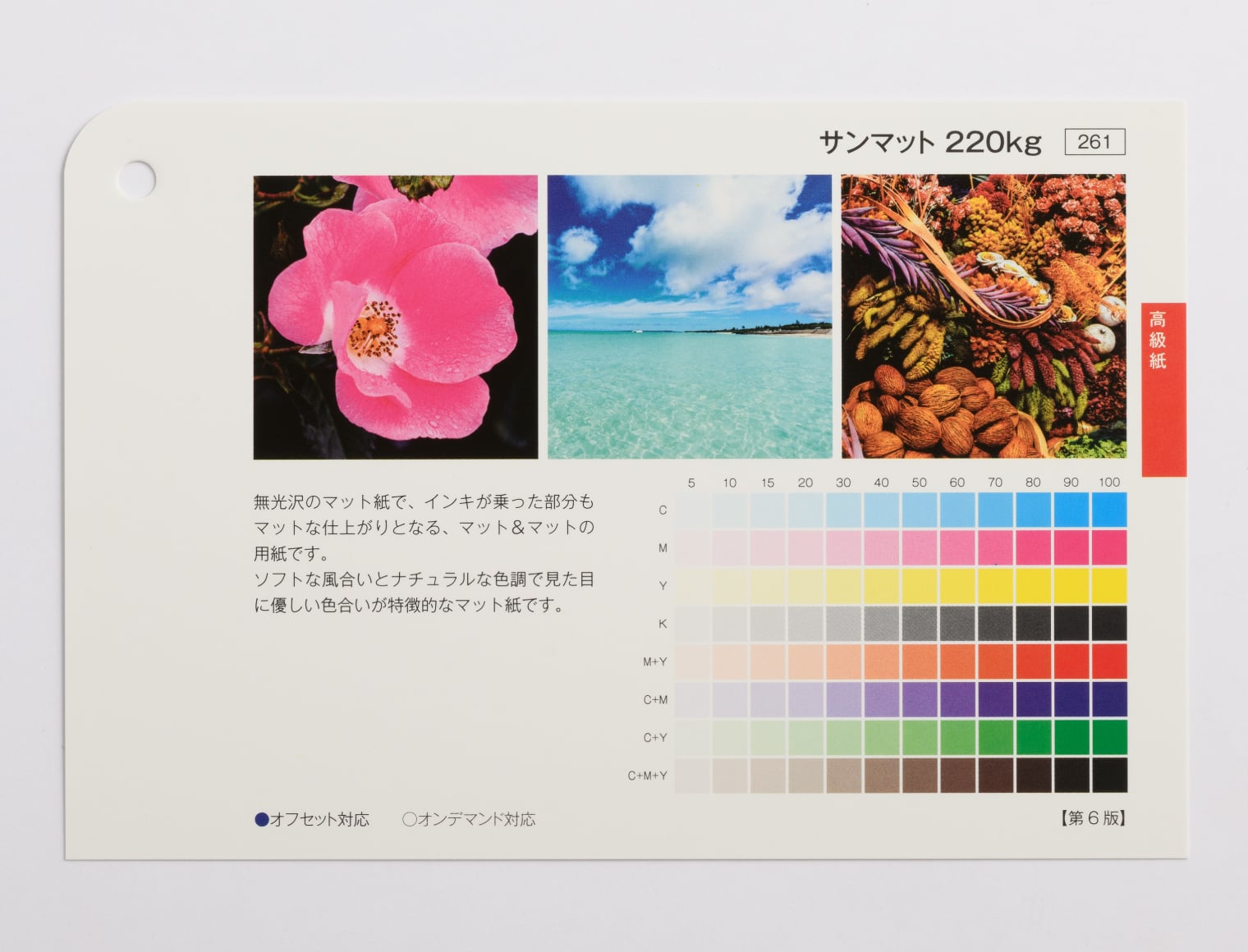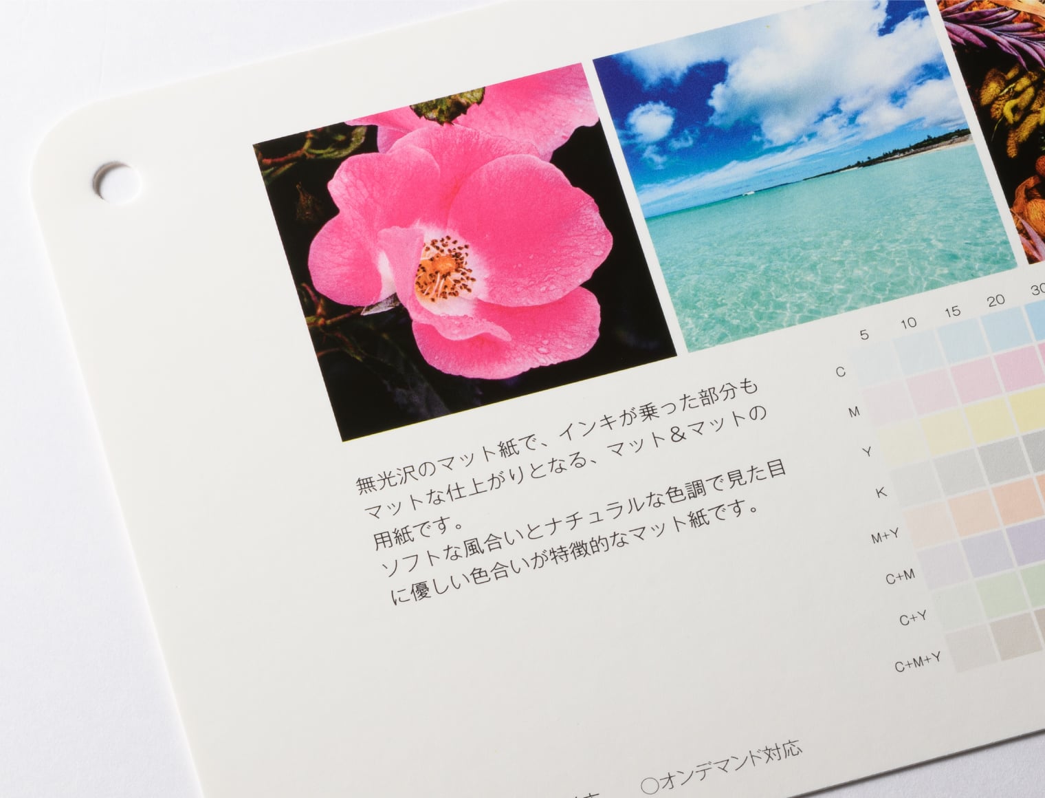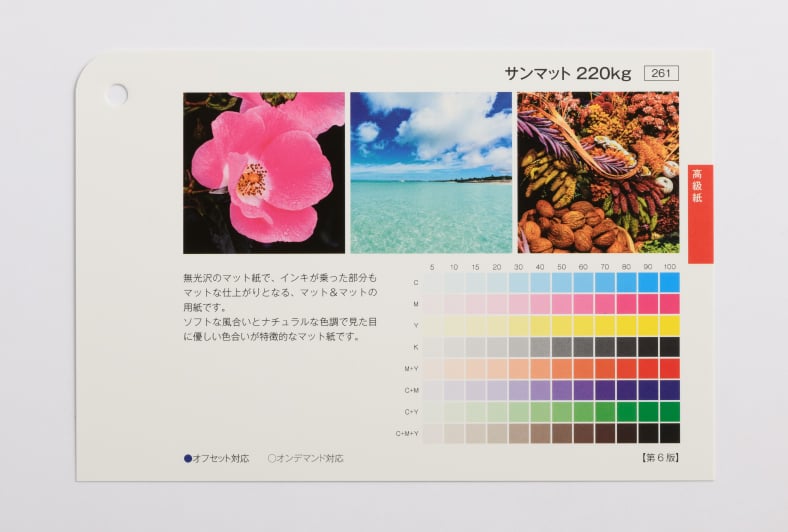 用紙の発色・厚み・手触り感はサンプル請求にて用紙サンプルをお取り寄せいただいてお確かめください。