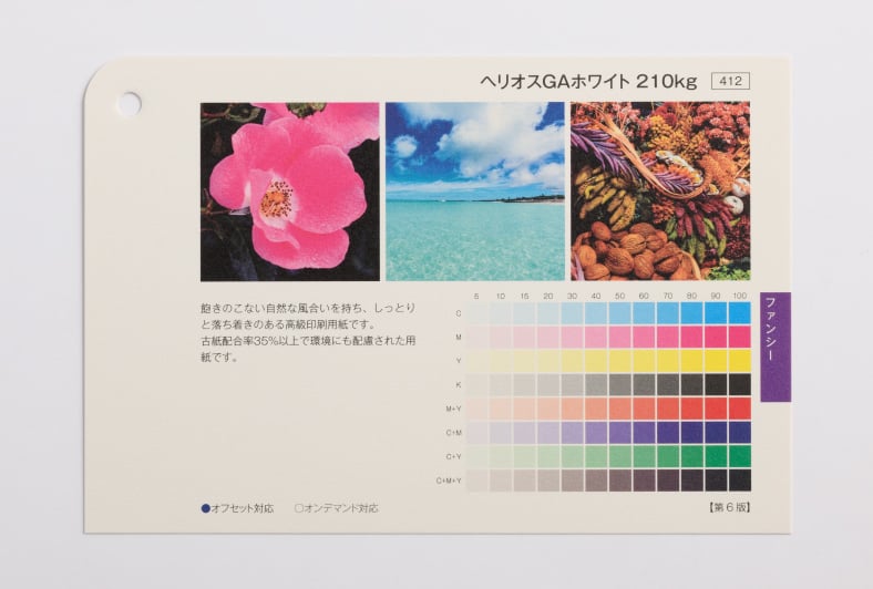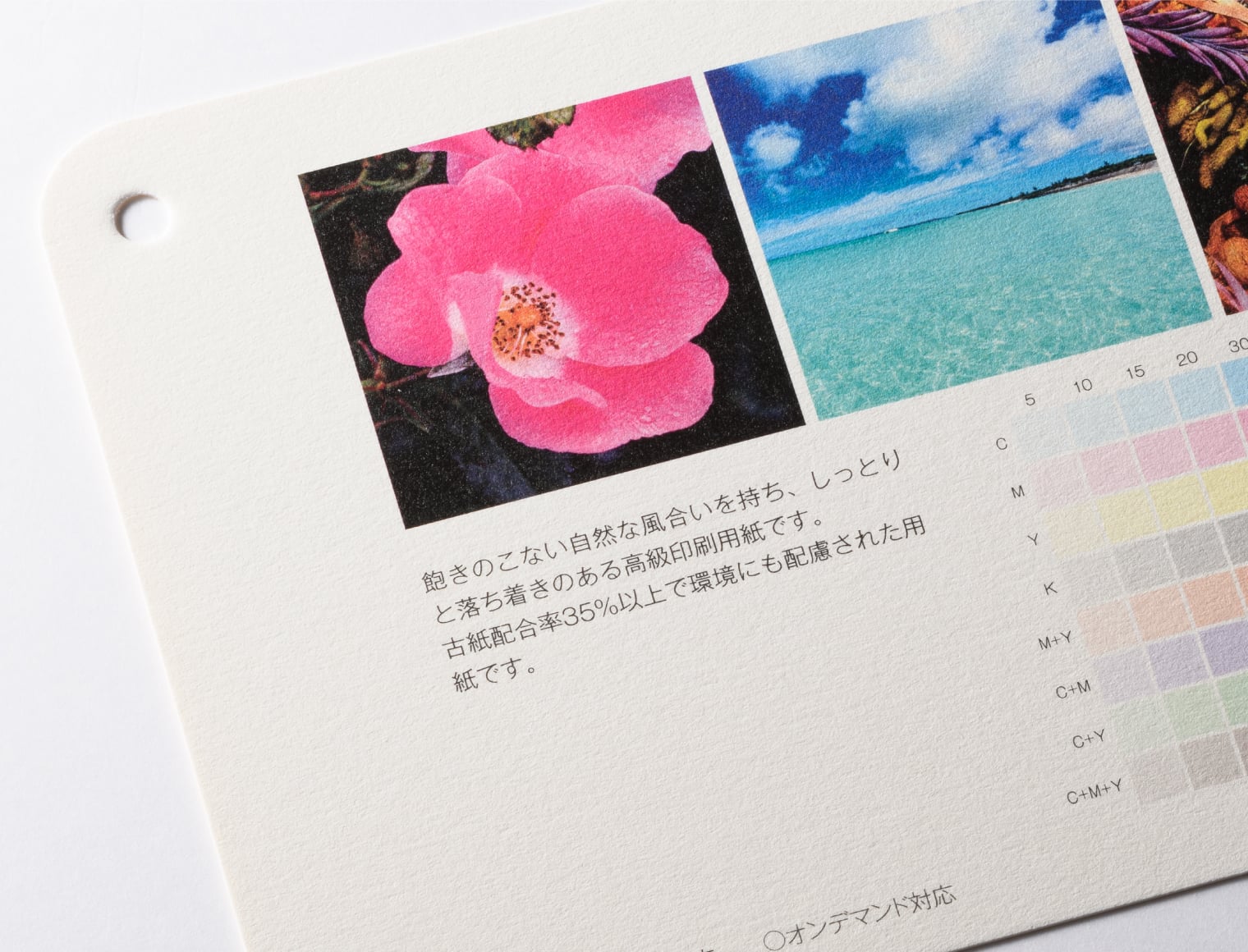 用紙の発色・厚み・手触り感はサンプル請求にて用紙サンプルをお取り寄せいただいてお確かめください。