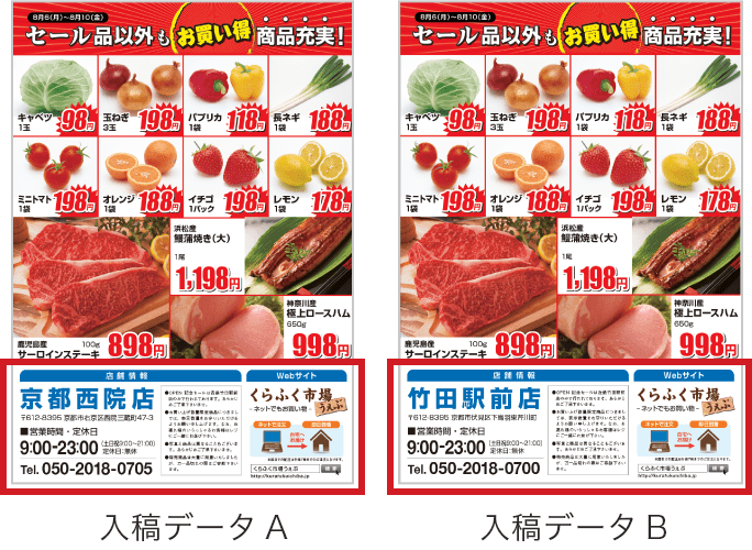 例2)店舗情報が異なったチラシデータ