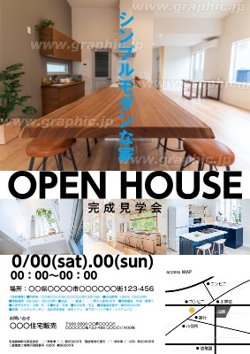 オープンハウス・完成見学会のチラシ・フライヤー作成に使える「イベント」がテーマの無料デザインテンプレートです。写真や文字を入れるだけで本格的なチラシ・フライヤーが作成できます。編集後はそのまま印刷注文も可能です。