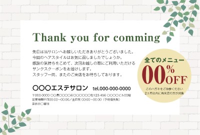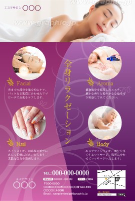 リラクゼーションサロンのポストカード・はがきDM作成に使える「SALE・キャンペーン」がテーマの無料デザインテンプレートです。写真や文字を入れるだけで本格的なポストカード・はがきDMが作成できます。編集後はそのまま印刷注文も可能です。