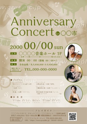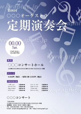 音楽公演のチラシ・フライヤー作成に使える「コンサート・演奏会」がテーマの無料デザインテンプレートです。写真や文字を入れるだけで本格的なチラシ・フライヤーが作成できます。編集後はそのまま印刷注文も可能です。