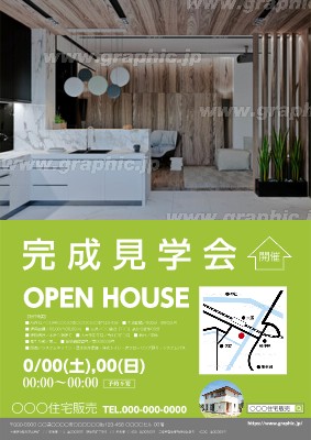 オープンハウス・完成見学会のチラシ・フライヤー作成に使える「イベント」がテーマの無料デザインテンプレートです。写真や文字を入れるだけで本格的なチラシ・フライヤーが作成できます。編集後はそのまま印刷注文も可能です。