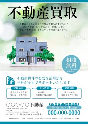 不動産売却・買取のチラシ・フライヤー作成に使える「お知らせ」がテーマの無料デザインテンプレートです。写真や文字を入れるだけで本格的なチラシ・フライヤーが作成できます。編集後はそのまま印刷注文も可能です。