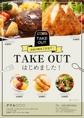 テイクアウト・持ち帰りのチラシ・フライヤー作成に使える「メニュー表・お品書き」がテーマの無料デザインテンプレートです。写真や文字を入れるだけで本格的なチラシ・フライヤーが作成できます。編集後はそのまま印刷注文も可能です。