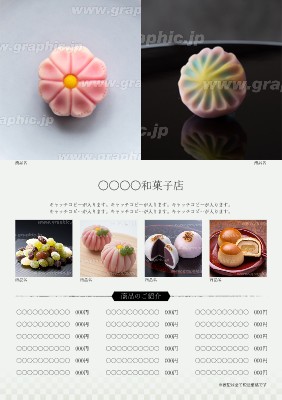 スイーツ・ケーキ屋のチラシ・フライヤー作成に使える「メニュー表・お品書き」がテーマの無料デザインテンプレートです。写真や文字を入れるだけで本格的なチラシ・フライヤーが作成できます。編集後はそのまま印刷注文も可能です。